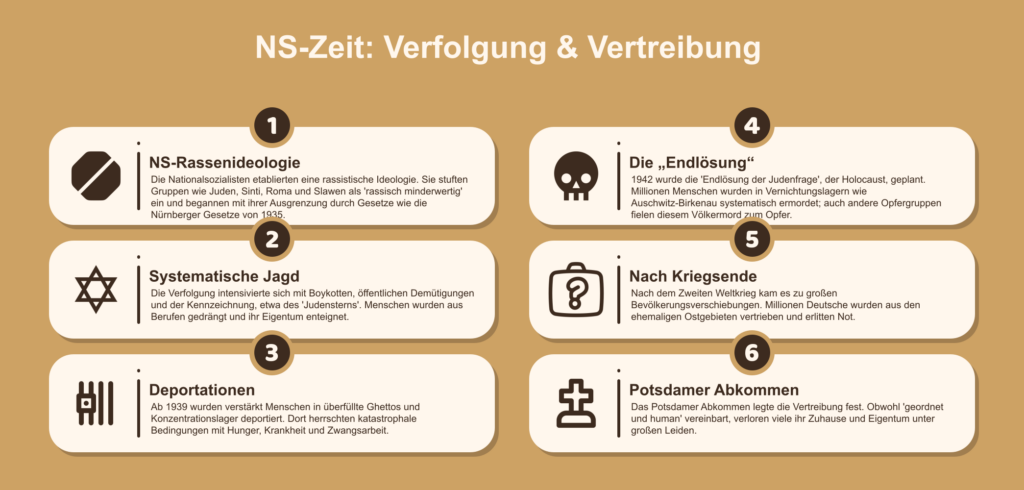 Der Zweite Weltkrieg endete 1945. Deutschland war besiegt. Viele Gebiete in Europa wurden neu geordnet. Millionen Menschen mussten ihre Heimat verlassen:
